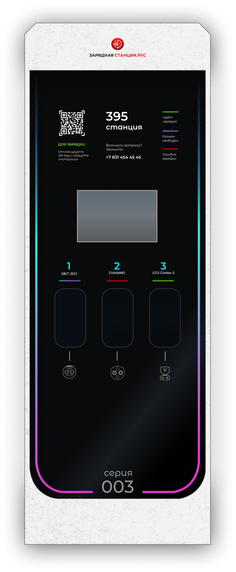 Зарядные станции серии 003 - это высокотехнологичные и мощные зарядные устройства для электромобилей на базе постоянного тока. Линейка зарядных станций 003 серии оснащена передовыми технологиями, чтобы обеспечить стабильность и безопасность зарядки.